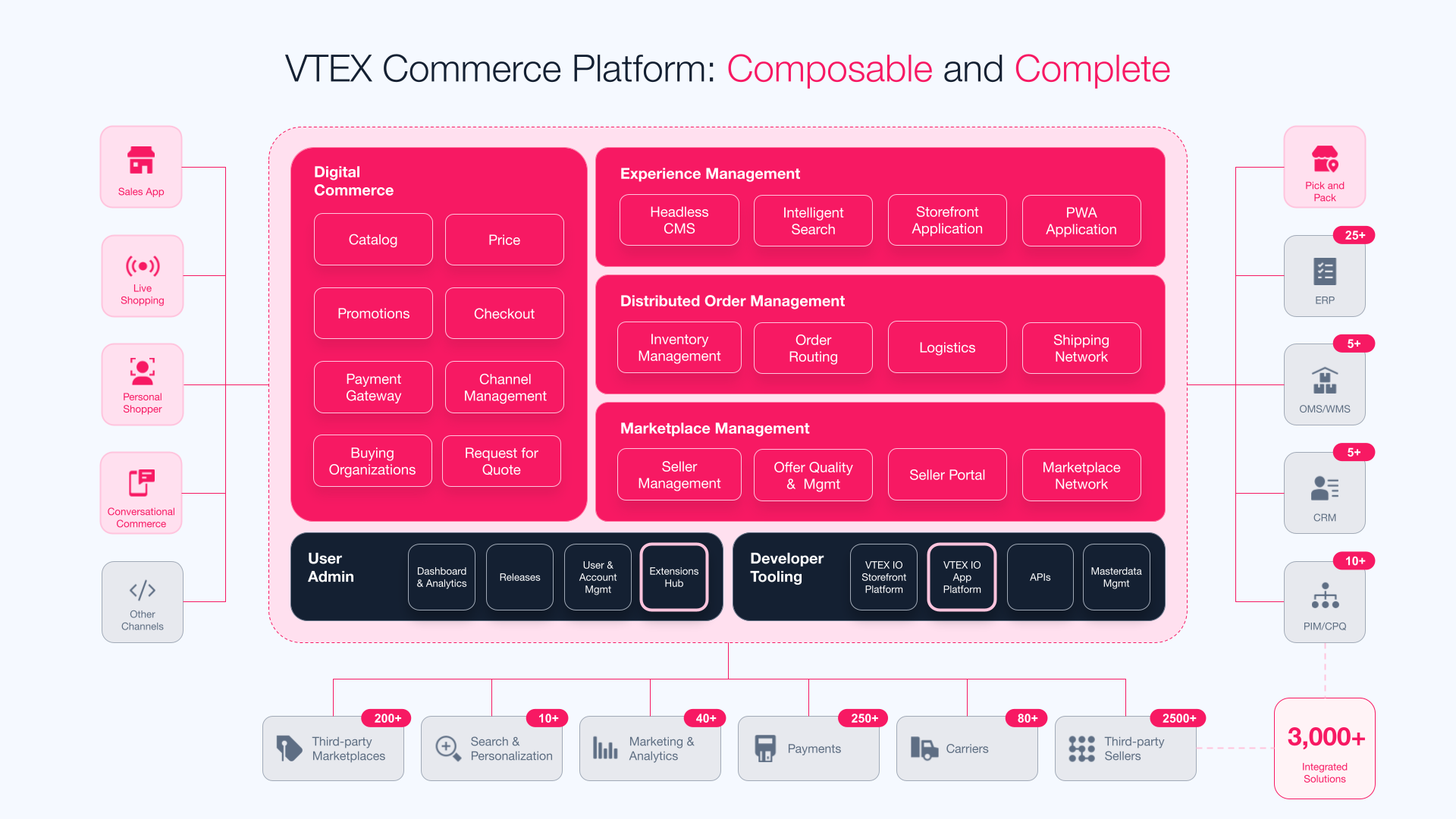 The following image shows VTEX's solutions and possibilities, which will be covered throughout this article series:
