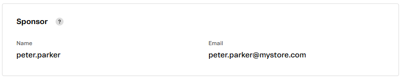 This section displays the account sponsor details. Each VTEX account has only one sponsor account, which has full access to all Admin sections, including important maintenance and authorization actions.
