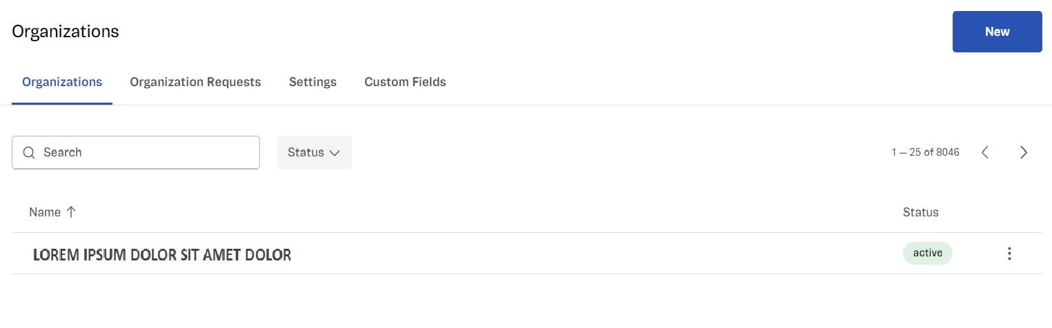 - In the VTEX Admin, go to Apps > B2B Organizations & Cost Centers > Organizations, or type Organizations in the search bar at the top of the page.