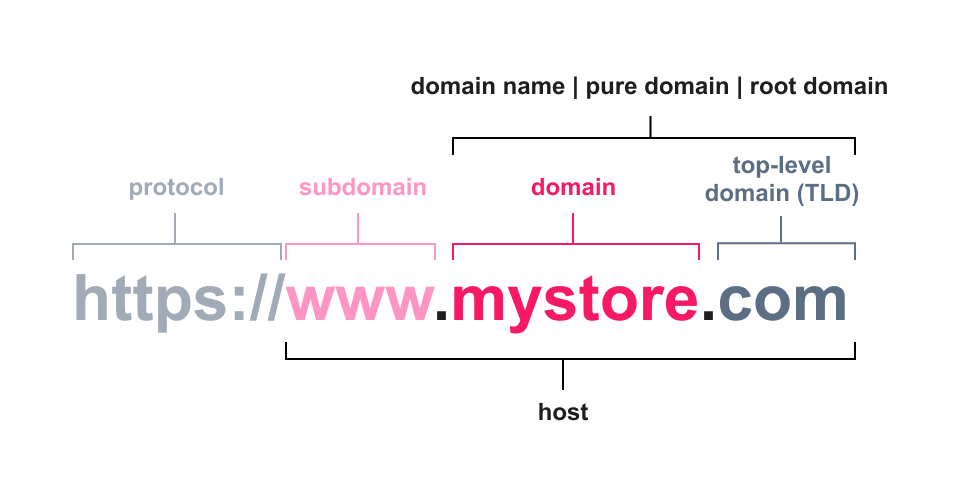 Domain name / Pure domain / Root domainDomain + top level domain.mystore.com