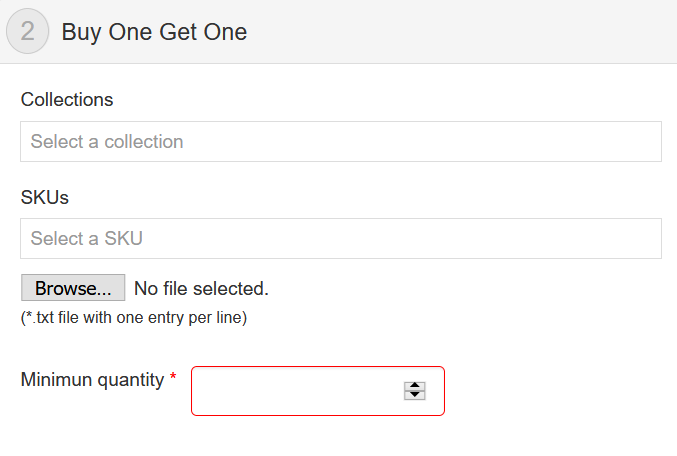 In the configuration of the More for Less promotion, the store must define which collections or SKUs it will apply to. Then, it must choose the minimum number of items in the cart for it to apply and the number of items that get a discount.