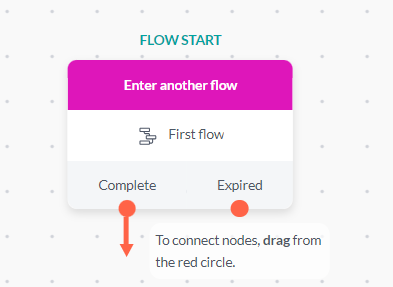 When the execution of the child flow is finished, the enter a flow letter gives us the opportunity for two routes, thus being the only action card that uses this concept (to understand the concept of route, visit the decision cards article). These two possible routes are based on how the child flow ended. If it was completed without any problems, the flow will take the Complete route and if the child flow has expired, the parent flow will use the Expired route.