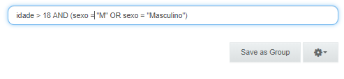 If my group has the contact field ""Age"" and the contact field ""Gender"" and I want to know how many male contacts are over 18 years old, I can use the following expression in the search: