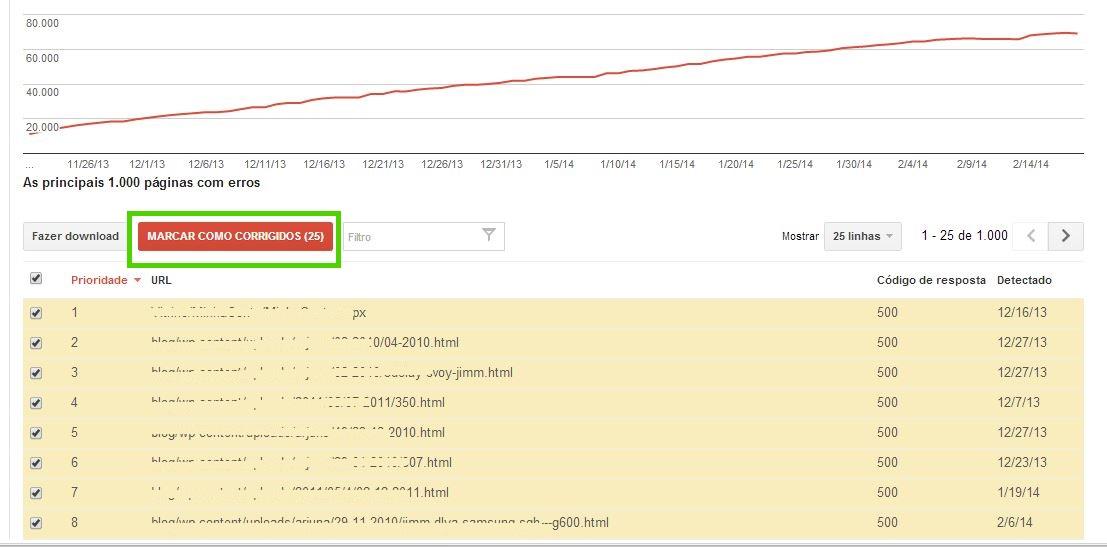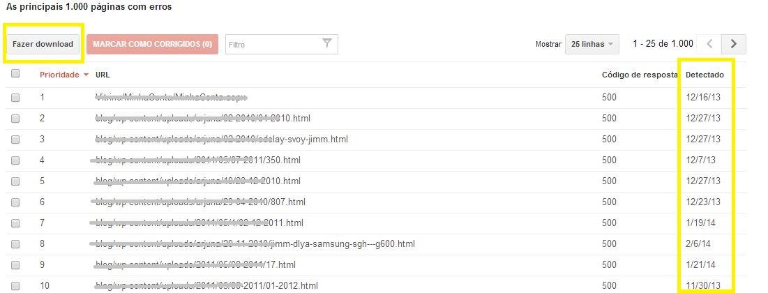 In this area, you will be able to view when the error occurred, the corresponding URL, and the type of error. Now, you will be able to export a worksheet (*.csv).