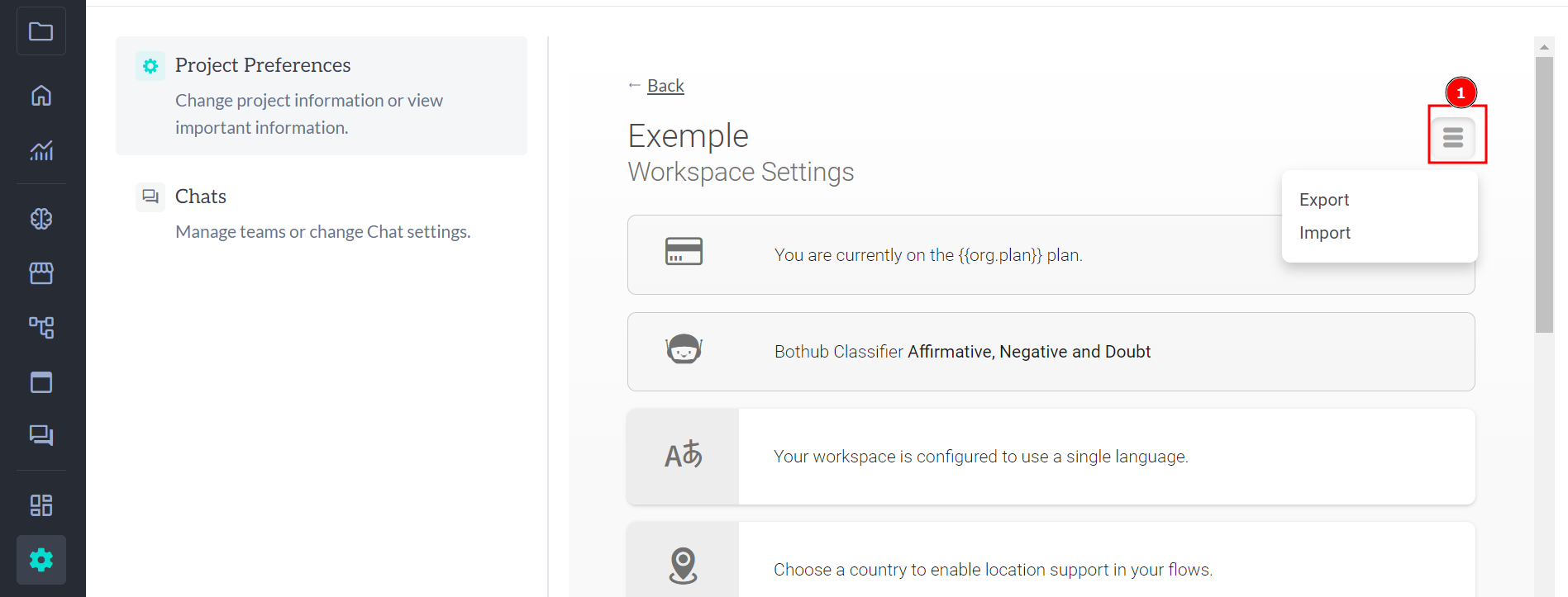 Once on the export page, it will display all the flows and campaigns of that organization, grouped by usage, meaning all flows in the same group interact with each other. If you export only one flow from a group, you may experience issues with its functionality.