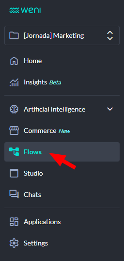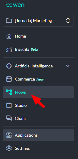 Any existing flow can be triggered through Chats. To do this, simply access Flows.