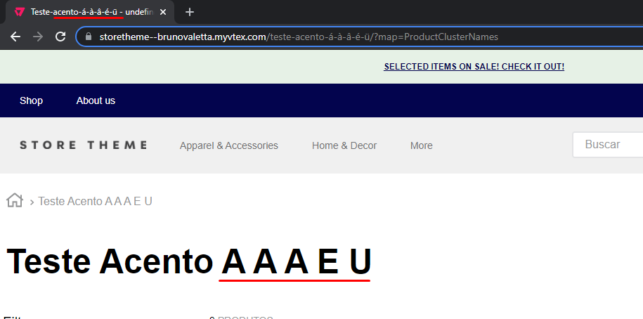 Collection pages accessed through map=productClusterNames show the collection name without accents in the search-title component.