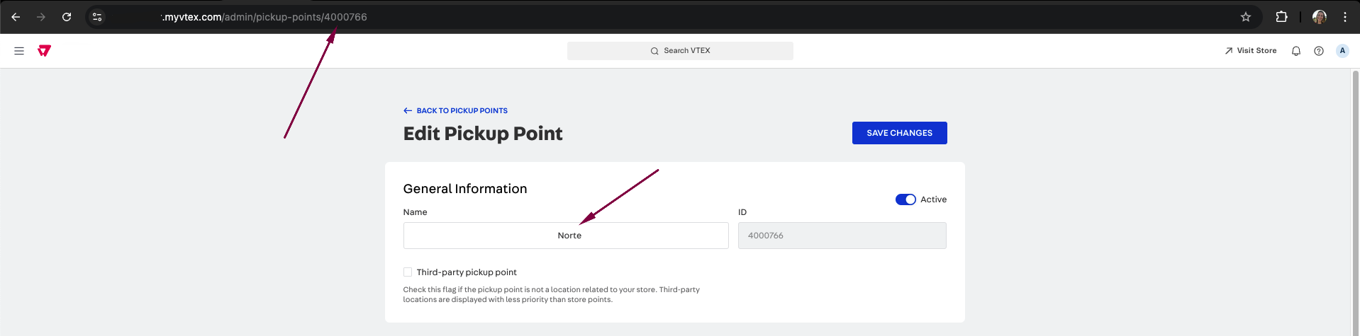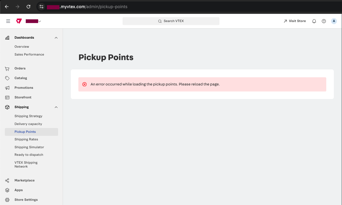 - Access the list of pickup points in logistics: https://accountname.myvtex.com/admin/pickup-points;
