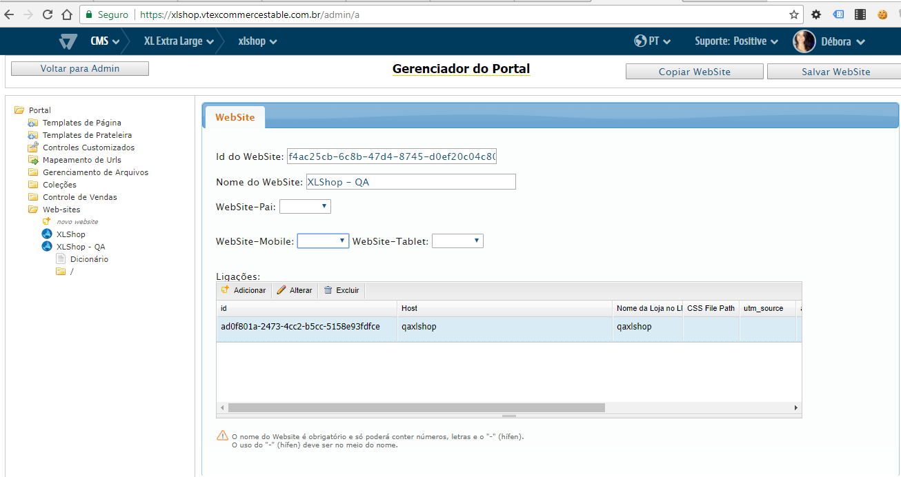 In the CMS module, the system lets the user manipulate a Web Site A and point to a Web Site B as a parent.