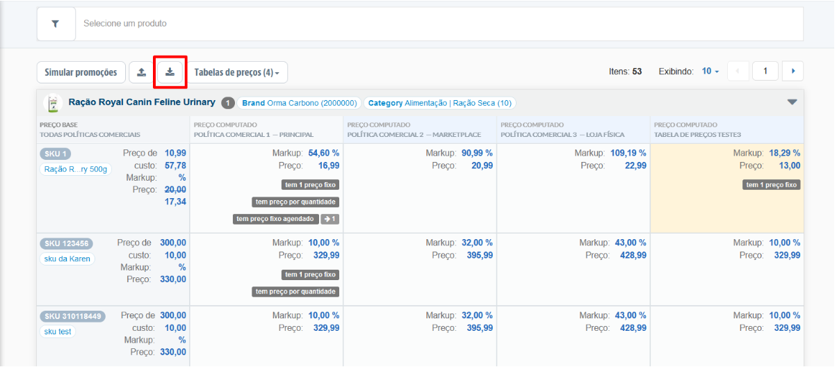 Definir preços fixos. - Na seção Preços fixos, clique no botão