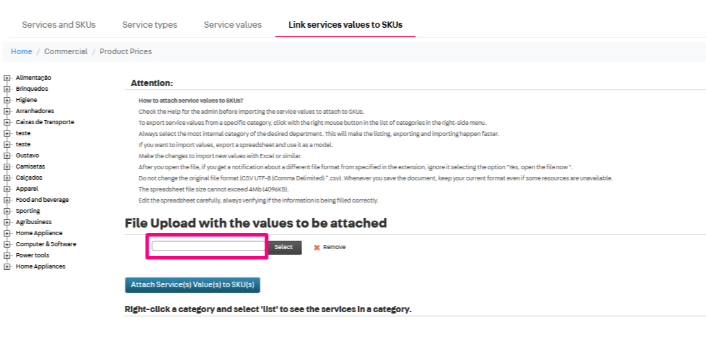 Id Serviço Valor: identifier number of the service value. To find out the ID of the service value, please refer to the
