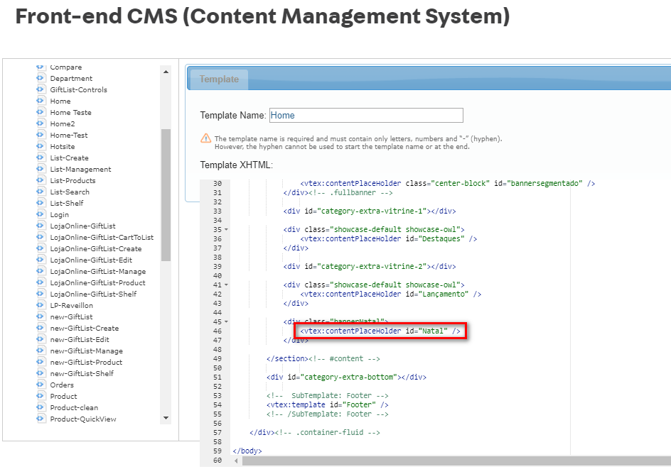 This is the placeholder control: <vtex:contentPlaceHolder id="" />