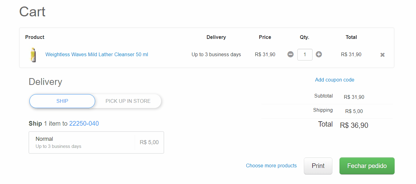 - In the cart, select the desired product.