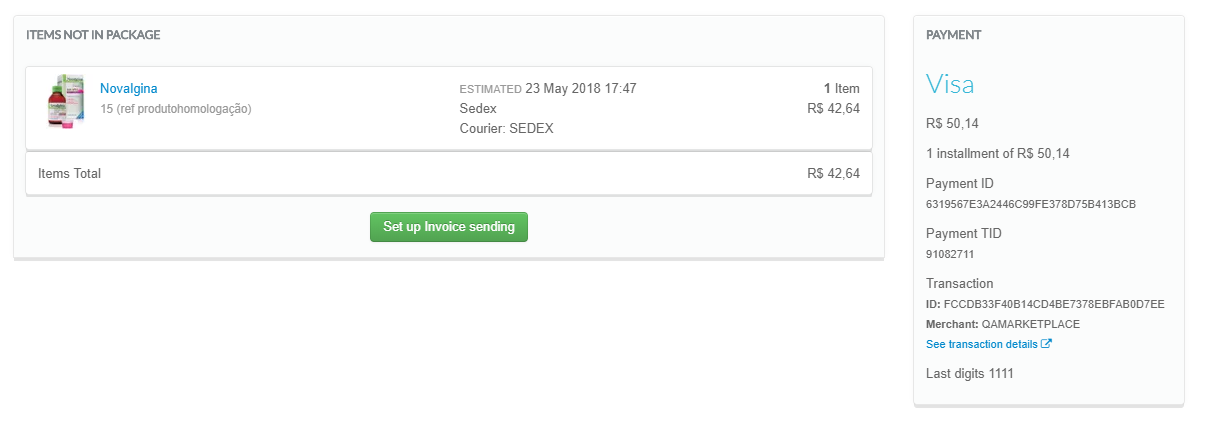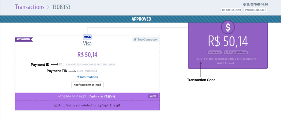 - Transaction Code: code that identifies the transaction in VTEX's gateway.