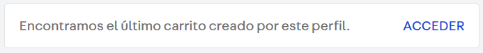 Después de que el vendedor identifica al cliente, VTEX Sales App busca información sobre ese cliente que pueda ayudarlo en la venta. Una de estas informaciones muestra el último carrito no terminado por el cliente.