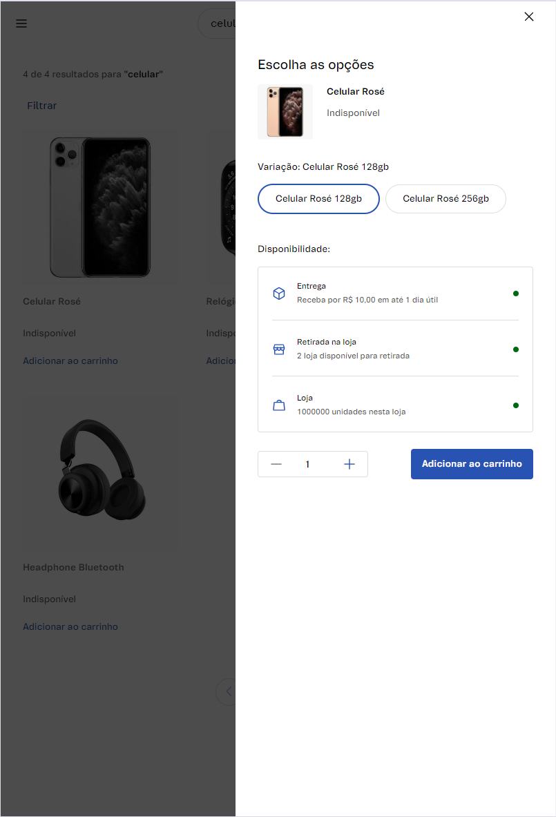 La búsqueda de VTEX Sales App es unificada, lo que significa que al realizar una búsqueda los resultados se obtienen tanto del stock local (de la tienda física) como de otras tiendas físicas y centros de distribución asociados a la tienda de ecommerce.
