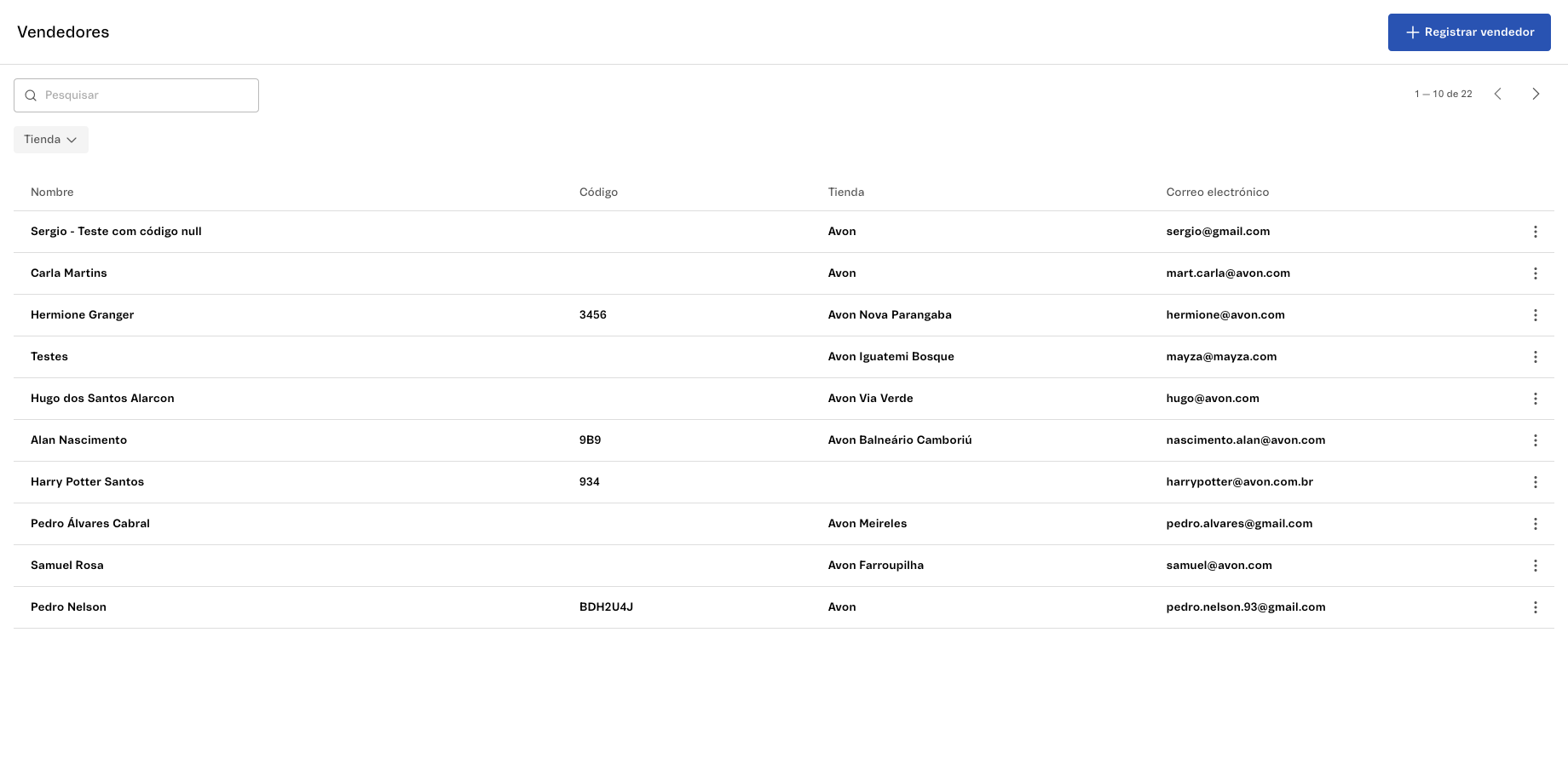 Haz clic en el filtro Tienda para filtrar los vendedores por el nombre de una tienda física específica.