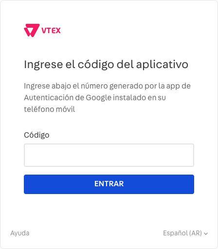 - Su cuenta VTEX se agregará a la aplicación, que generará un código de 6 dígitos. Ingrese ese código para finalizar su inicio de sesión.