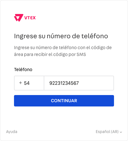 - Usted recibirá un mensaje de texto de VTEX en el celular indicado. Ingrese la clave de 6 dígitos para finalizar su inicio de sesión.