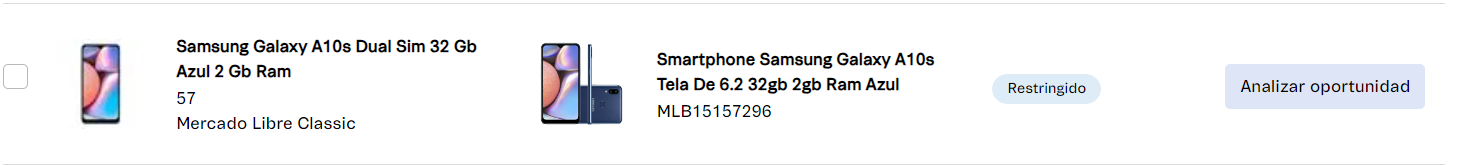 | Oportunidades | Una oportunidad es un producto del seller que se puede vincular a un producto del catálogo de Mercado Libre. El objetivo de la oportunidad es proporcionar al seller una herramienta que pueda realizar la asociación entre los productos. |