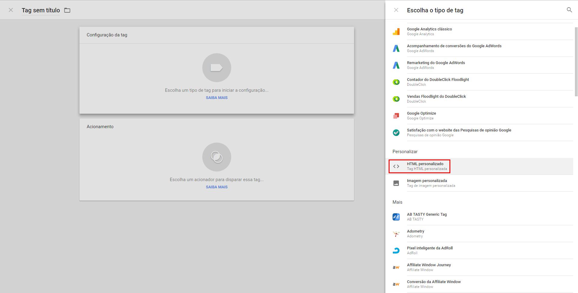 - Seleccione ** Configuração da tag ** y elija el tipo HTML personalizado.;