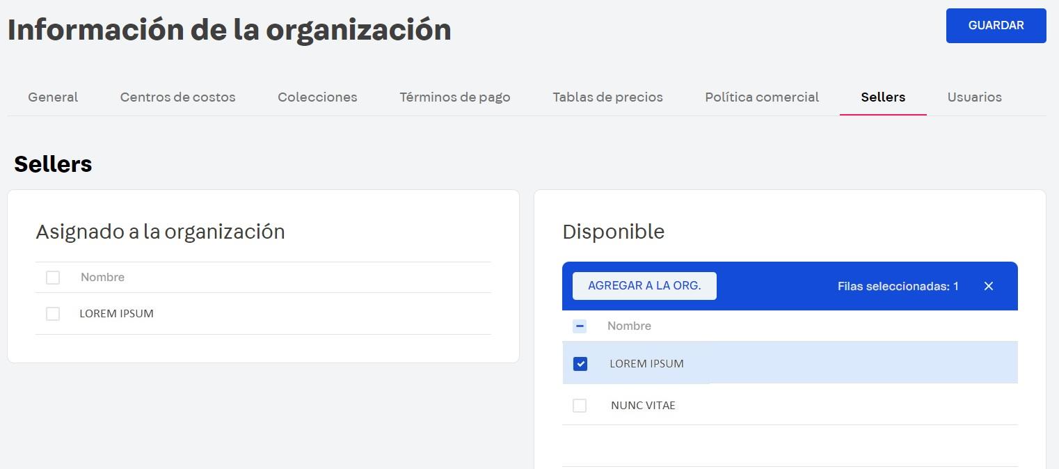 Para asignar sellers a una determinada organización compradora sigue los pasos a continuación:
