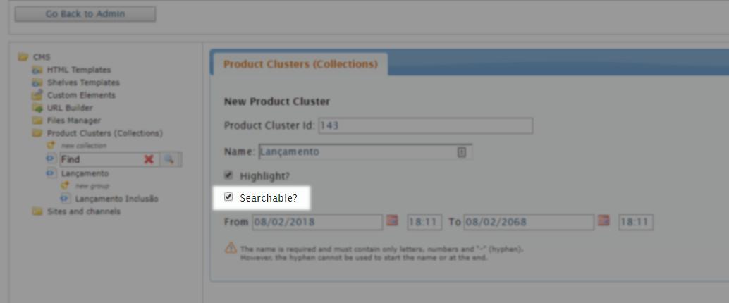 Para que un campo de producto o un campo de SKU se muestre en el menú por el control Search Navigator, debe tener dos flags seleccionados:
