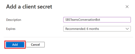 - Ingresa una Descripción y un período para la expiración del secreto, luego selecciona Agregar.