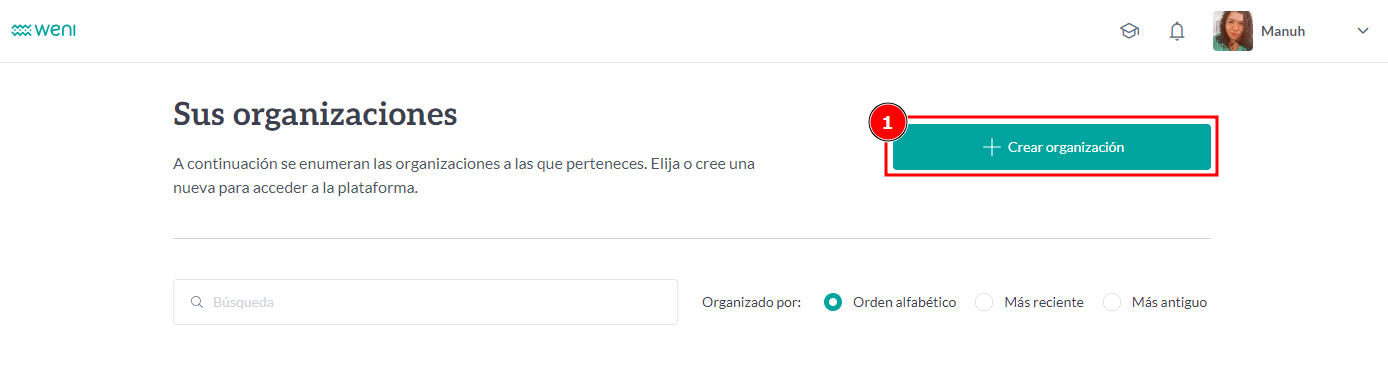En la etapa de registro e inicio de sesión, ya ha creado su primera organización y proyecto. Para crear una nueva organización, simplemente haga clic en Añadir Organización.