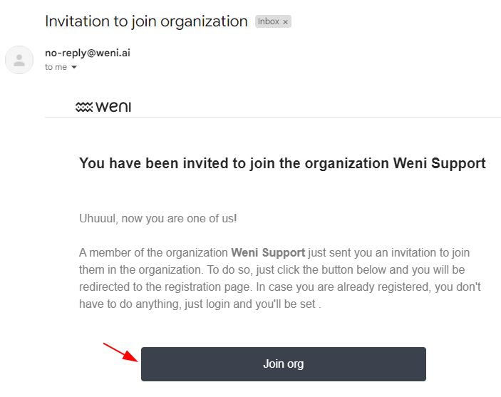 Los miembros que sean añadidos recibirán un correo electrónico de invitación para unirse a la organización, vea la imagen: