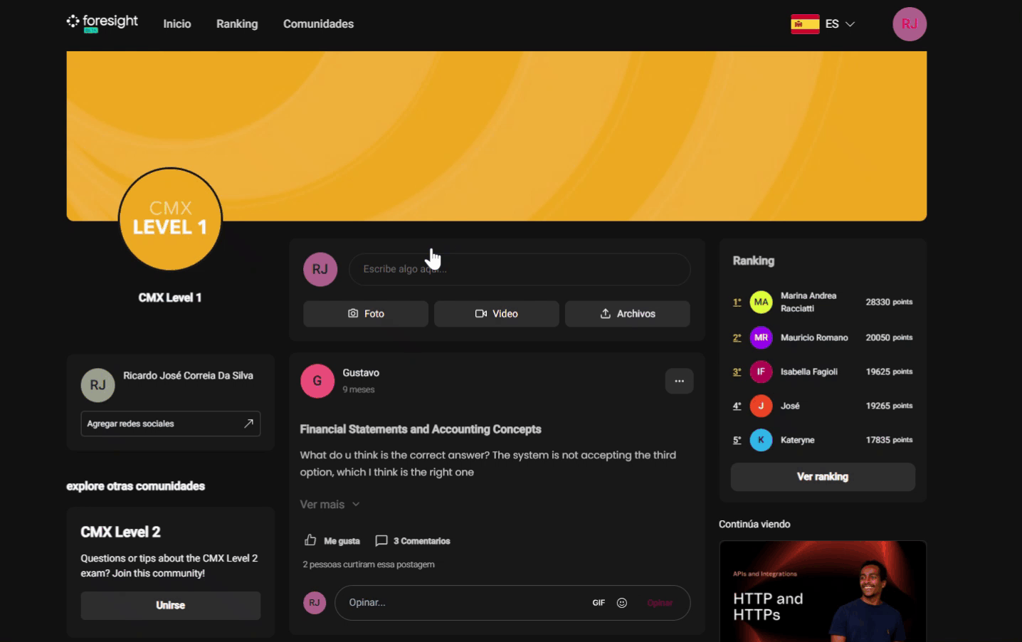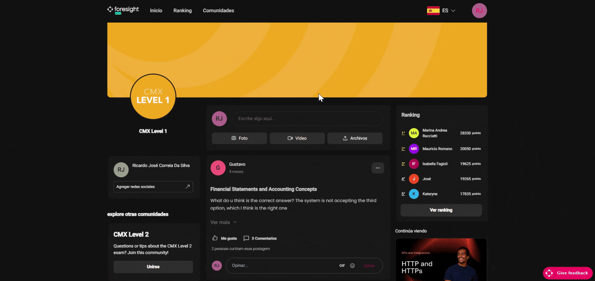 Además, Foresight también cuenta con comunidades de miembros, donde es posible intercambiar experiencias o resolver dudas sobre temas específicos, y un ranking para registrar y clasificar a todos los usuarios según su nivel de interacción en la plataforma.