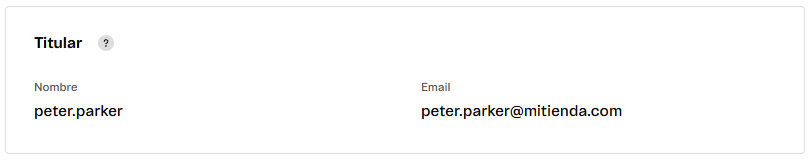 En esta sección se presentan los datos del usuario titular de la cuenta. Cada cuenta VTEX tiene un único usuario titular, que dispone de acceso completo a todas las secciones del Admin, incluidas las acciones críticas de mantenimiento y autorización.