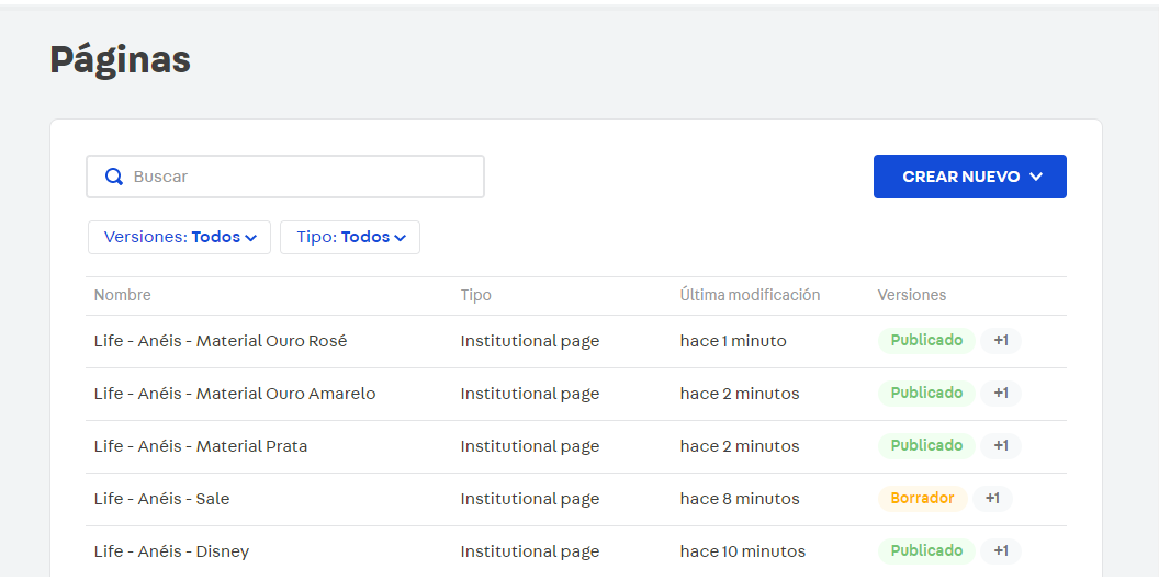 - Luego de realizar los cambios deseados en la página que creaste, haz clic en el botón