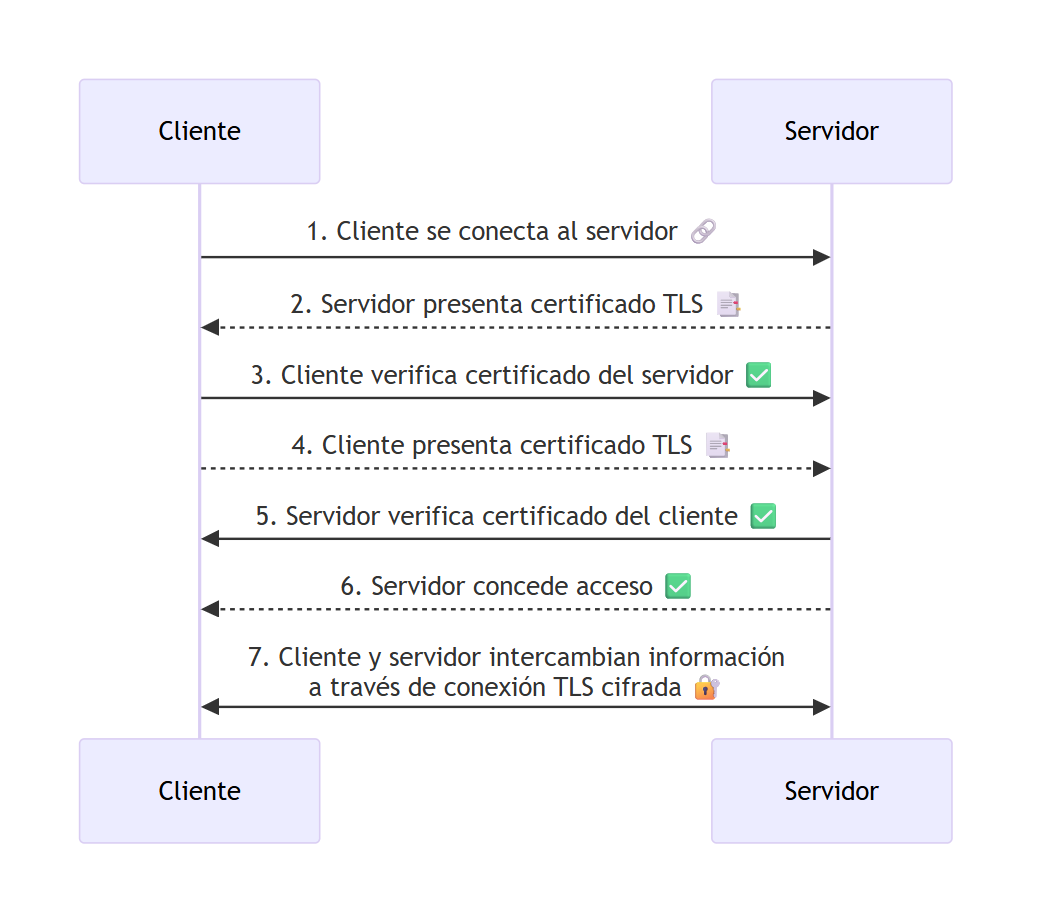 • Autenticación mutua: el cliente y el servidor verifican la identidad del otro antes de intercambiar cualquier dato, lo que impide accesos no autorizados.