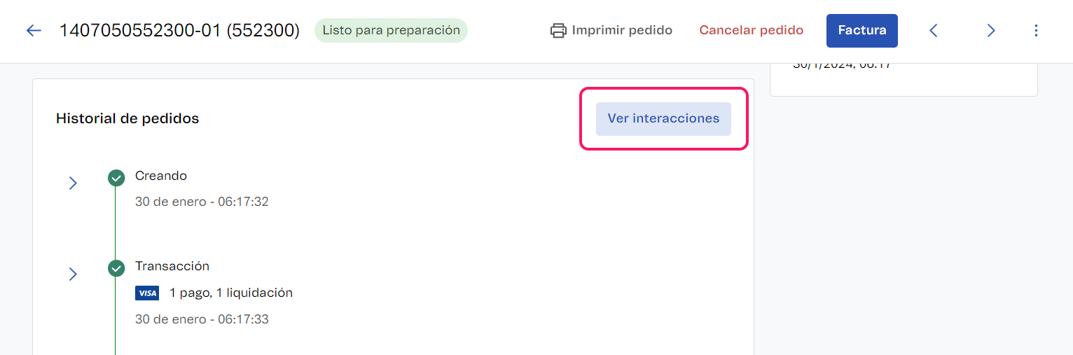 - Haz clic en el pedido deseado para acceder a la página de detalles del pedido.