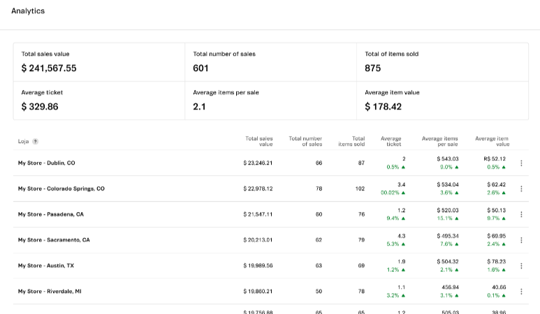 Desempeño de ventas es una página de VTEX Sales App que permite que administradores de las tiendas y vendedores accedan a las métricas de ventas, mostrando la comparación de desempeño entre periodos de ventas y desempeño de los empleados.