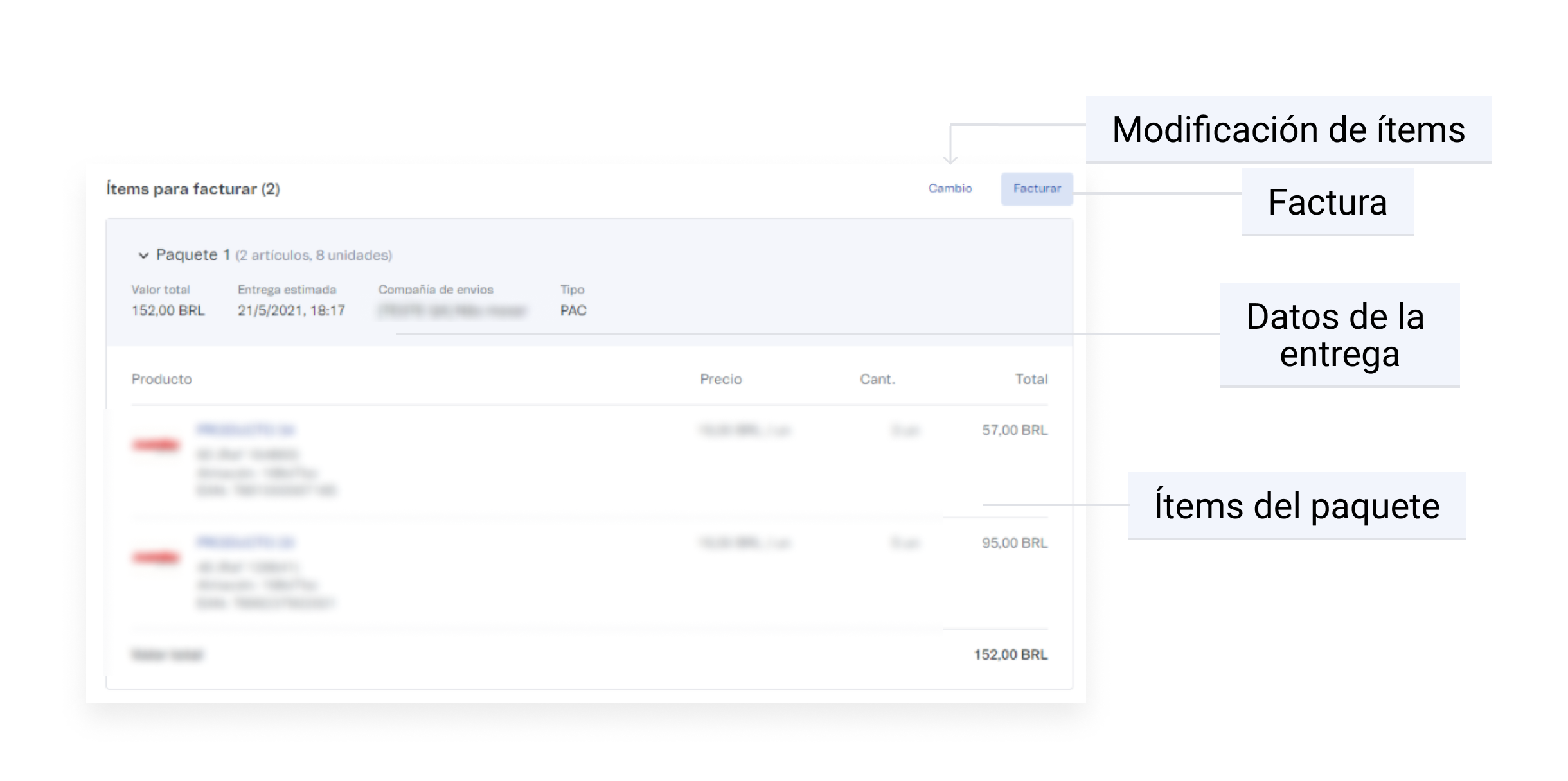 - Enviar factura con referencia a los ítems: para facturar el pedido haciendo referencia a los ítems del paquete.
