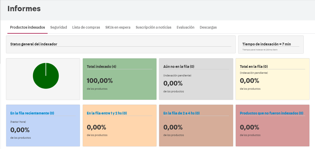 El Informe de Indexación es el reporte que indica el status de indexación de todos los productos de la tienda.