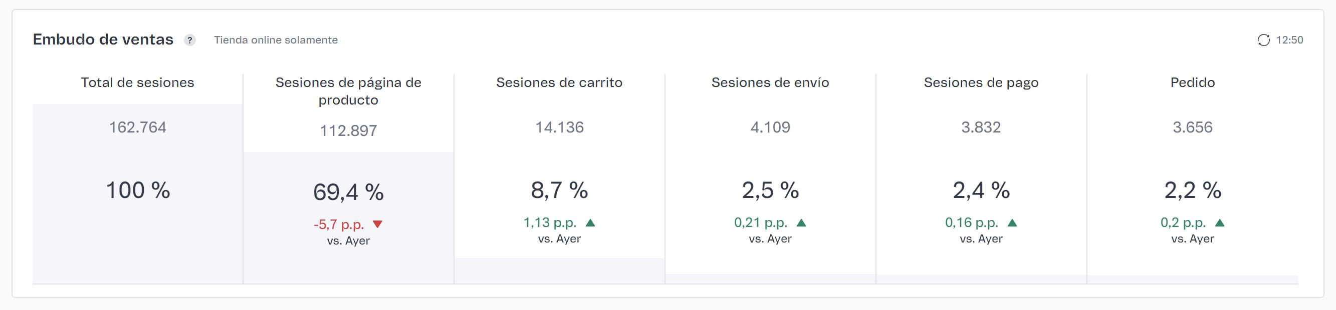 SesionesEl número de visitas a tu tienda. Esta métrica solo está disponible para las tiendas que captan datos de navegación.