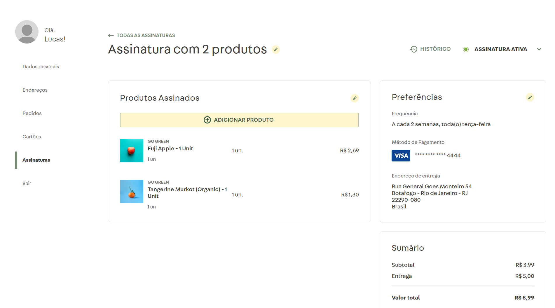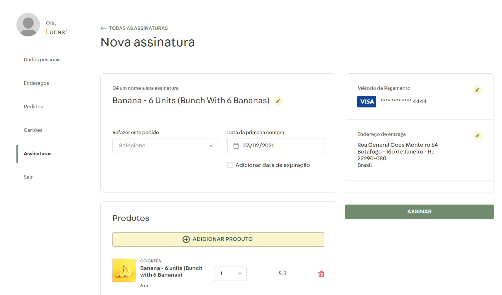 Adicionar produto à sua assinatura