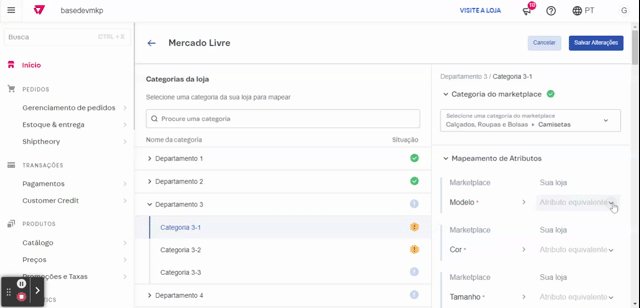 Ao finalizar o mapeamento de categorias e atributos corretamente, o status da categoria mudará para Mapeado e seus produtos serão anunciados no site do Mercado Livre.