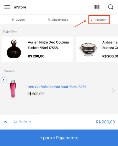 Feito isso, o carrinho será transferido para esse segundo dispositivo, de onde a venda poderá seguir normalmente.