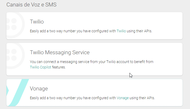 Oferecemos um tratamento padronizado para todos os canais, ou seja, mesmo que você escolha mais de uma opção, a plataforma vai tratar os contatos exatamente da mesma forma. Outra forma de integrar canais é na aba Descoberta no módulo de Aplicativos.