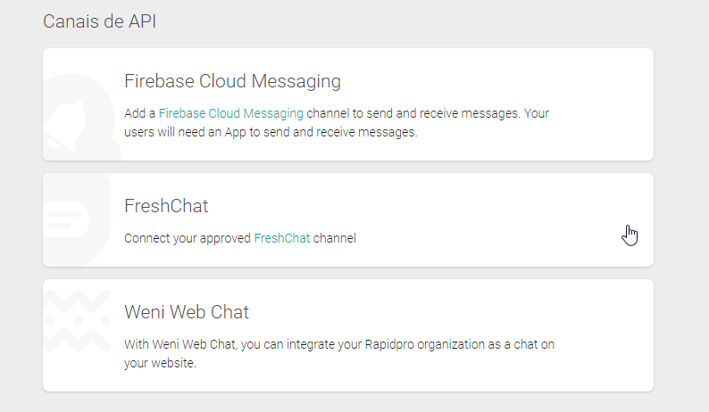 - Uma nova janela será aberta onde poderá escolher o tipo de canal que deseja integrar.
