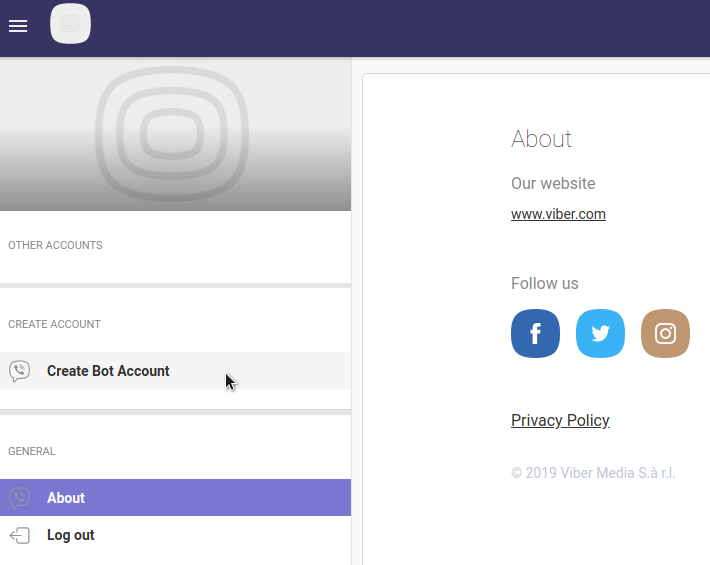 Tendo uma conta válida, acesse o painel de administração neste link: https://partners.viber.com/login e vincule-o a conta com o número que foi registrado no aplicativo.