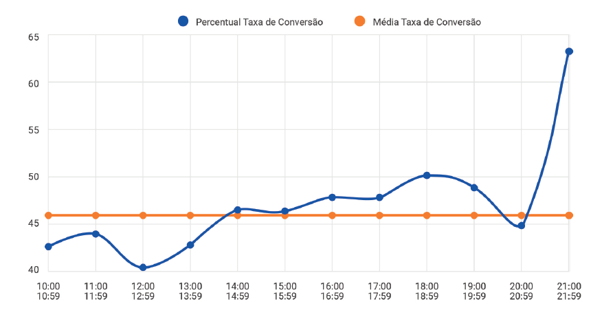 O objetivo é que a taxa de conversão por hora permaneça acima dessa linha de referência.