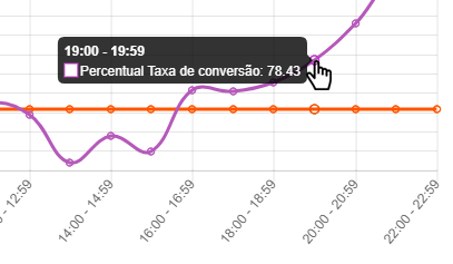 Posicione o cursor sobre os pontos do gráfico para visualizar o percentual da taxa de conversão.