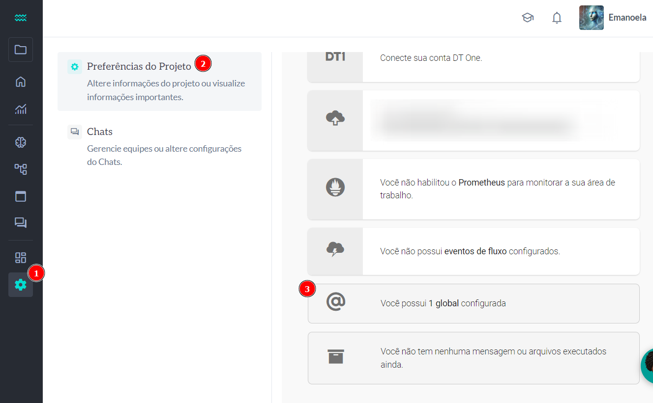 Para criar uma global, basta ir para as configurações gerais de sua organização e descer até o fim da página, onde você irá encontrar a aba para as globals.