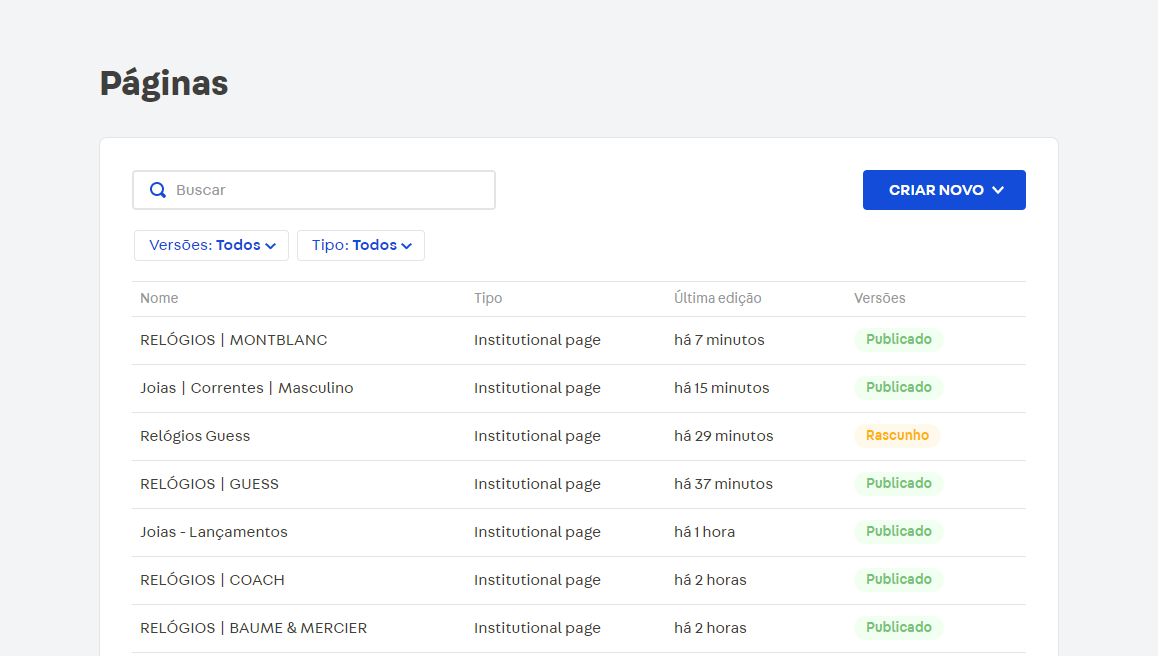 3. Após fazer as alterações desejadas na página criada, clique no botão PUBLICAR.
