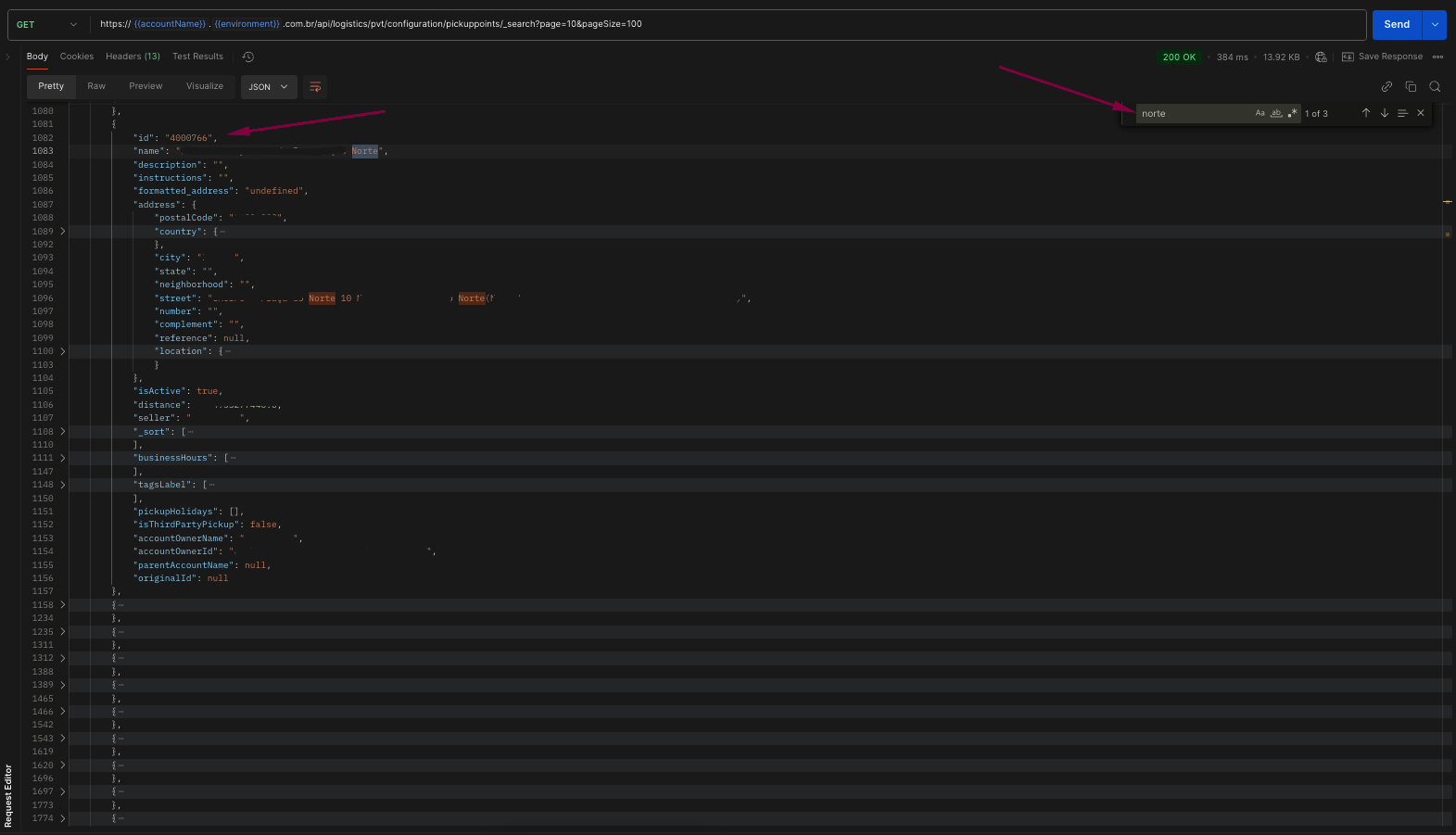 Como isso ocorre de forma intermitente, você pode tentar novamente em alguns instantes. Você também pode listar todas as lojas de retirada (da API de logística), localizá-la na resposta e identificar seu id. Em seguida, adicione o ID ao URL do administrador. Para até 1.000 PUPs, você pode usar a API "List pickup points". Acima desse número, use a API "List paged pickup points" (lembrando-se de navegar pelas páginas):